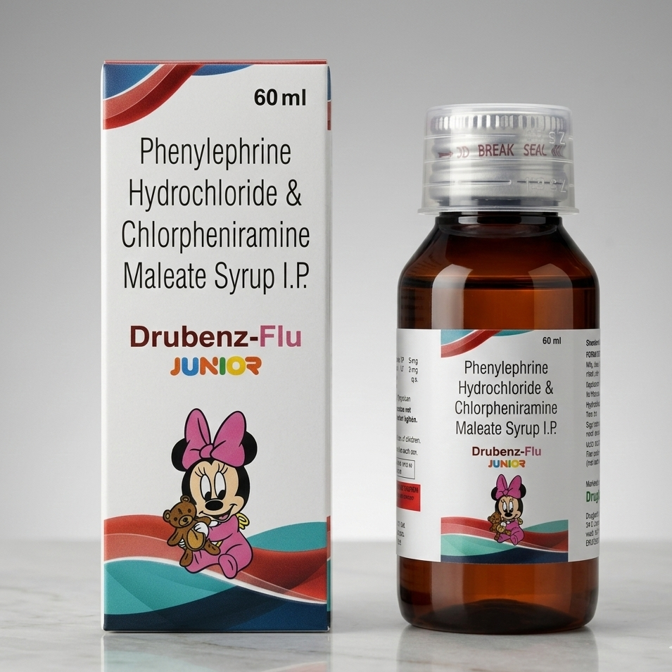DRUBENZ-FLU JUNIOR is specially formulated for relief from flu symptoms in children, including cold, sneezing, and congestion.