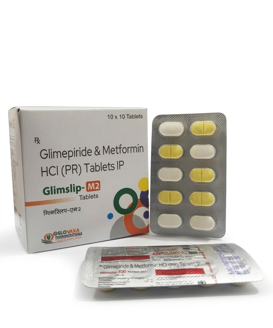 GLIMSLIP-M2 is a higher-strength combination of Glimepiride and Metformin, formulated for enhanced glycemic control in patients with uncontrolled diabetes. It ensures better glucose regulation and improved insulin sensitivity.