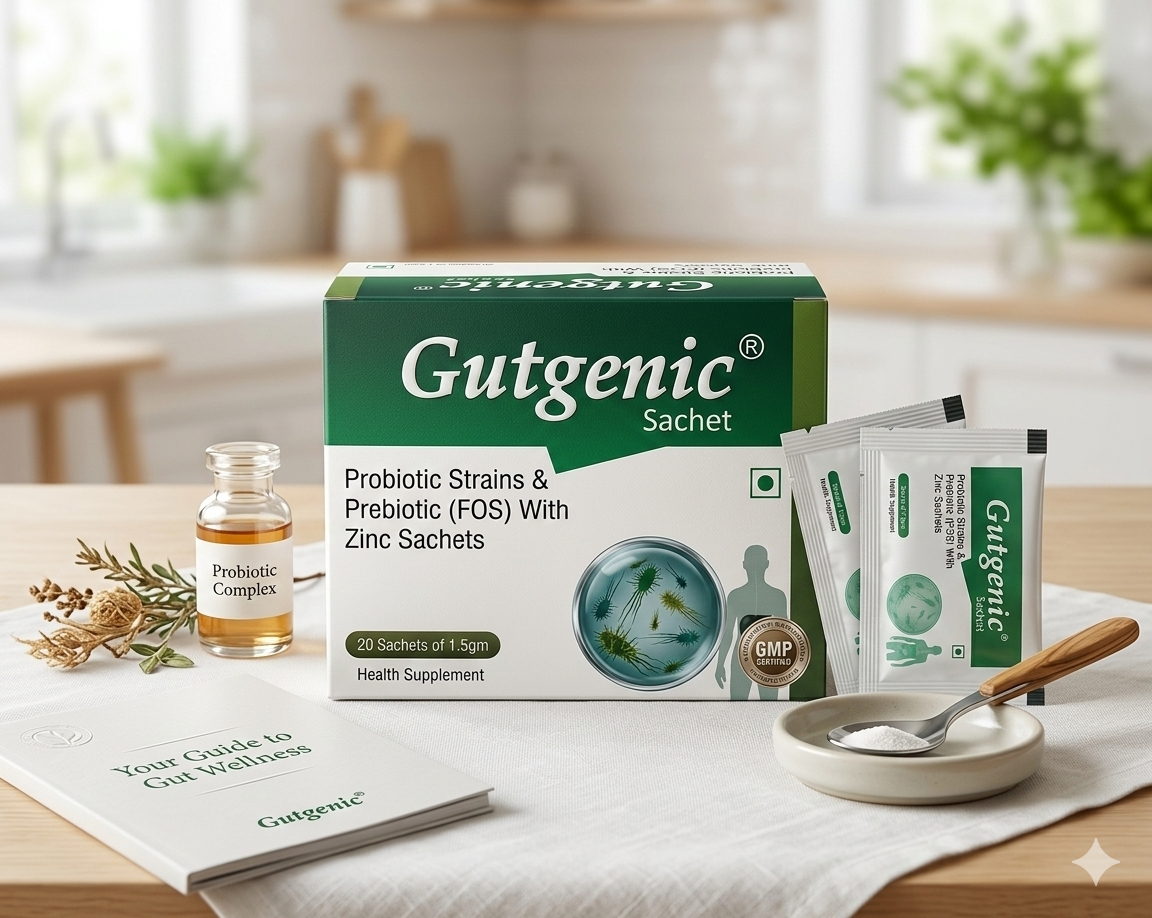 GUTGENIC SACHETS contain a blend of probiotics and prebiotics, designed to restore healthy gut flora and improve digestive function. They are highly effective in managing diarrhea, gut imbalance, and digestive disorders.