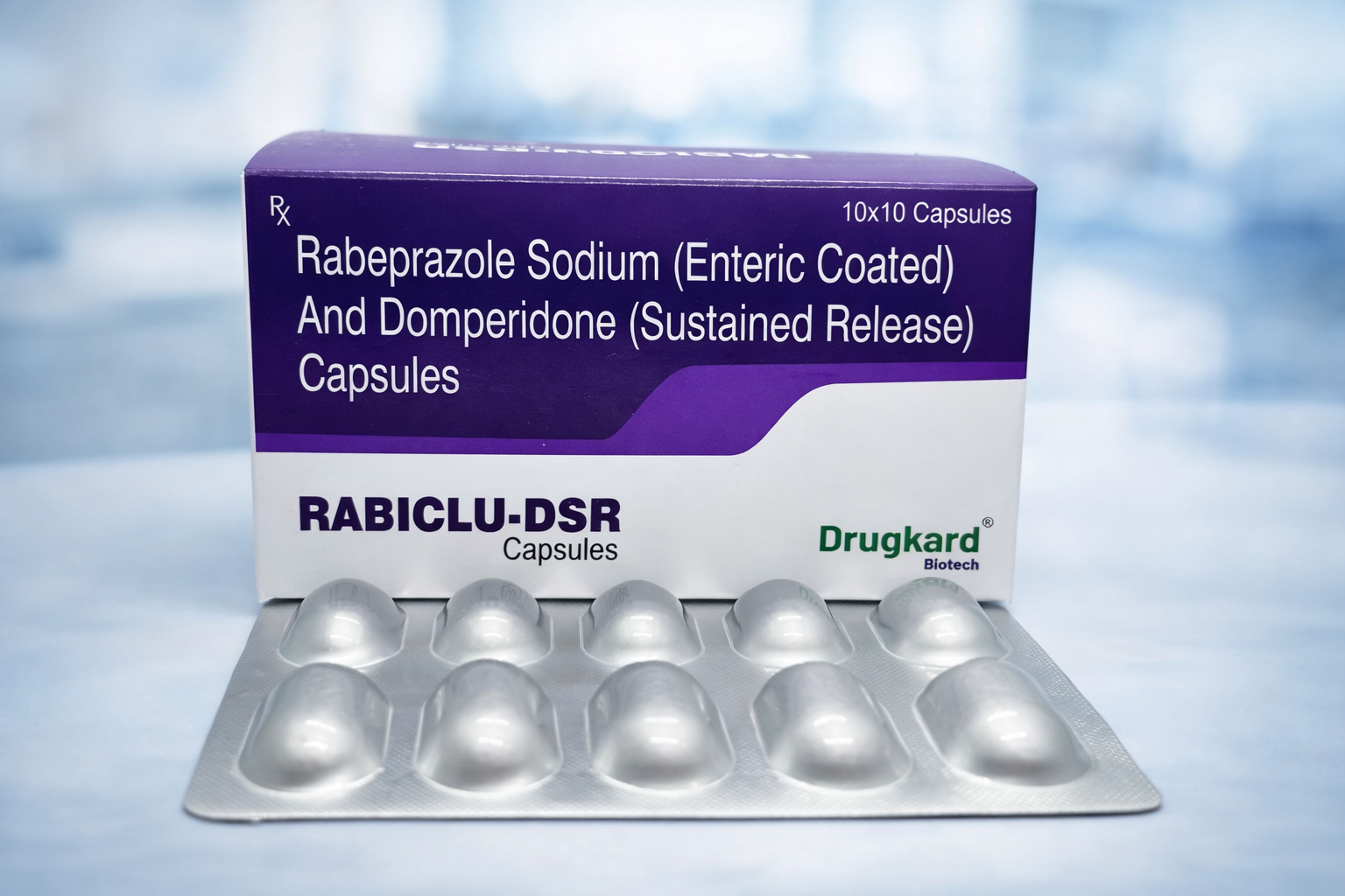 RABICLU-DSR CAPSULE is a combination of Rabeprazole and Domperidone, designed for comprehensive management of acidity and reflux disorders. It reduces acid secretion and improves gastric motility.